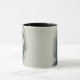 Mug in an illustration of a graceful, long-haired white cat with piercing blue eyes strides confidently forward against a smoky, cloud-like background. Rendered in a detailed ink illustration style, the image evokes a blend of traditional Chinese ink painting and contemporary digital art.