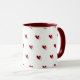 11oz white mug featuring a bold pattern of dark red hearts with filled centers. Perfect for adding a touch of romance to your coffee moments or gifting someone special.