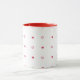 11oz white mug featuring a charming mix of small solid red hearts and hollow red hearts outlined in red, with a matching red handle. Perfect for cozy coffee moments or as a romantic gift.