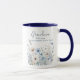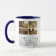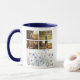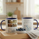 Celebrate cherished family moments with this whimsical botanical photo mug. The design features a delicate watercolor wildflower border in shades of dusty blue and white paired with a clean four-photo grid. It makes a heartwarming gift for grandmothers or mothers looking to enjoy their morning coffee surrounded by memories of their favorite people.
