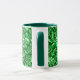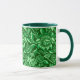 Mug em uma safra William Morris, Art Nouveau, impressão floral de girassóis estilizados, digitalmente melhorados e coloridos, em verde esmeralda profundo e verde-claro