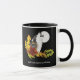 Wold Howling em uma lua de cheio com folhas e bolotas de outono em um pano de fundo de preto