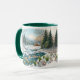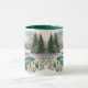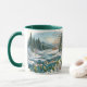 aconchegue-se com uma xícara de café quente e aproveite a cena da maravilha do inverno nesta linda caneca. Apresentando uma ilustração detalhada de uma floresta nevada, lago congelado e camarote aconchegante, esta caneca é a maneira perfeita de adicionar um toque de magia de inverno à sua rotina diária