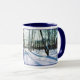 Uma bela paisagem coberta de neve agarra esta caneca. Perfeito para dias confortáveis pelo fogo com uma caneca quente de cacau!