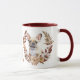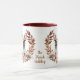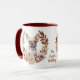 Uma bonito coroa de outono em tons de cinamão marrom, bronzeado e creme rodeia a imagem de um Bulldog Francês. A imagem é impressa duas vezes na caneca, com seu texto personalizado entre eles. Você pode facilmente substituir o texto pelo seu nome, se preferir.