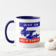 O impressão patriótico da Segunda Guerra Mundial intitulado "Dê-lhes os dois barris", representando um civil americano no trabalho numa fábrica de munições e um soldado americano nas linhas de frente.