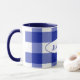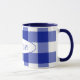 Xadrez de búfalo azul e branco com nome personalizado. O nome pode ser editado ou excluído.
