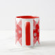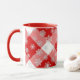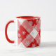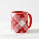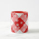 Mug num padrão grande, profundo, vermelho e branco de xadrez de búfalos, com flocos de neve brancos