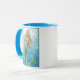 Sereia numa caneca azul cintilante projetada a partir de uma pintura original de Greer.