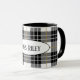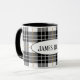 Caneca xadrez de tartan preto e branco com nome