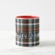 Excelente que olha a caneca escocesa do clã feita no teste padrão tradicional do vermelho de Stewart, o verde e o branco do vestido da xadrez. O texto do estilo do Velho Mundo no branco lê Stewart e é customizável ler o que você quer.
