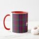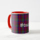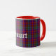 Uma caneca de clã escocesa com aparência de excelente feita no padrão tradicional colorido de xadrez Stuart. O texto no estilo do mundo antigo em branco lê Stewart e é personalizável para ler o que você quer.