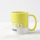 Amarelo moderno BLESSED In Jesus' mug Christian, com a palavra BLESSED em tipografia BRANCA e IN JESUS em PALE YELLOW. Todo o texto é PERSONALIZÁVEL, para que você possa criar seu próprio texto e adicionar sua referência de script favorita. Esta caneca cristã inspiradora faria um presente de excelente para o Natal, Aniversários, Dia de as mães, Dia de os pais, etc. Outras cores (incluindo as versões de brilho) estão disponíveis.