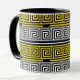 Caneca Yellow White Black Greek Key Fret Pattern Design