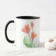 Pintura em aquarela de tulipas vermelhas. O texto diz: "Você fez seu Qigong hoje?" O texto pode ser alterado.
