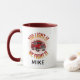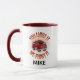 The design showcases a classic red fire truck set against dynamic burst lines in fiery shades of red, orange, and yellow—making it eye-catching, high-energy, and instantly readable. Built around real firehouse humor, it captures the mindset and attitude of those who answer the call. The mug handle and interior colors can be changed, and it is available in other sizes and styles. There is space under the artwork to include a custom name