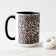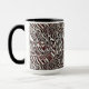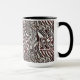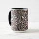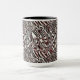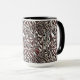 Essa massa elaborada, intrincada, de padrões riscados, rolados, é digitalmente editada, como um gráfico abstrato, em cores de castanho, cinza, preto e branco, tecidas em conjunto, simulando as marcas, de um animal africano.