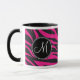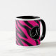 Caneca Zebra Negra Preta, Rosa Quente, Monograma Inicial