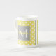 Canecas alternas da especialidade de China do monograma das bolinhas do amarelo, das cinzas e do branco