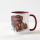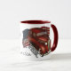 Caracterizando minha capitulação artística de um veículo clássico velho, e uma bandeira americana do vintage, estas grandes canecas trarão a um elogio nostálgico pequeno ao todo o aquelas que amam estes guzzlers idosos grandes do gás e seu chá ou café da manhã.