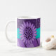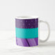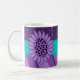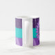 Caneca de café moderna com uma flor roxa, fita do ilhó de turquesa em umas bolinhas roxas e fundo da tira. Personalize-a adicionando o texto se você deseja.
