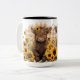 Cumprimente seu café da manhã com um brilho alegre! Esta adorável caneca de cerâmica apresenta uma cena encantadora de bezerros Highland em um campo de girassóis. As cores vibrantes e o design adorável certamente farão você sorrir a cada gole.