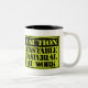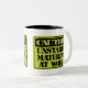 Uma caneca engraçada com um cuidado de oferecimento do sinal sobre materiais instáveis. Projetado para a pessoa que obtem um pouco emocional no trabalho de vez em quando.
