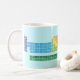 Canecas que caracterizam a mesa periódica dos elementos na parte dianteira & na parte traseira, com cada grupo do elemento marcado em cores do arco-íris.