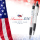 On July 4, 2026, America celebrates a milestone in its history—250 years of American Independence. Celebrate America’s historic 250th milestone with this elegant patriotic pen. Featuring a festive styled design with the US map covered with the American flag, this Stars and Stripes America 250 design blends the Semiquincentennial Anniversary message and election-year pride.