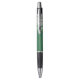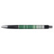 Banhas em bandas horizontais em crochê de solteiro, em torno do corpo de caneta. Branco com fina cor verde (2 tonalidades) e linhas verdes-cinza na parte superior, banda ampla de verde-escuro na parte inferior. Personalize o nome em branco na banda inferior.