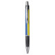 Caneta com a bandeira de Riverside, Califórnia. Uma bandeira amarela e azul com o selo da cidade no centro