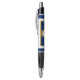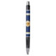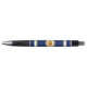 Caneta com a bandeira de Springfield, Massachusetts. Uma bandeira azul com contorno amarelo e branco e a ilustração da estátua de Santo Augustus Gaudens no centro