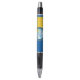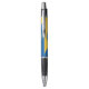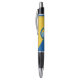 Caneta com a bandeira dos Papais noeis Ana, Califórnia. Uma bandeira amarela e azul com o selo da cidade no centro