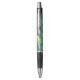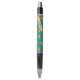 Um par de pombinhos bonitos numa caneta para celebrar um aniversário. Use "Personalizar este modelo" para ajustar o texto "AVANÇAS DE ANIVERSÁRIO FELIZ!" e criar um presente exclusivo e personalizado. Dois pombinhos devotados a abraçar-se num galho, com uma fita para a sua legenda, todos desenhados no estilo da arte retrorreflectora dos pixéis. Um presente para um aniversário, Dia de os namorados ou gesto romântico para qualquer época do ano. Os pássaros do amor são pequenos papagaios afetuosos e monogâmicos, nativos da África. Este desenho é baseado na colorido espécie Lovebird de Fischer com sua plumagem verde e laranja.