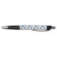 A obra de arte apresenta corações azuis e cinzas flutuando suavemente sobre o espaço de design.