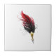 Caneta antiga, desenhada artificialmente, embelezada com pena vermelha escura sobre fundo branco.
