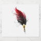 Caneta antiga, desenhada artificialmente, embelezada com pena vermelha escura sobre fundo branco.