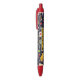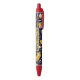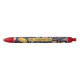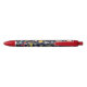 Caneta criativa de professores com material de sala de aula e ônibus escolar. Editar texto para adicionar nome.