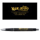 Um design de caneta de negócios simples e na moda com fundo preto. Personalize o logotipo e os detalhes da sua empresa ouro e torne-o seu próprio logotipo. Um design ideal para promoções de negócios, artigos de papelaria para funcionários, presentes para clientes, marketing de negócios e publicidade.