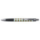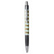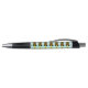 Esta caneta incrível apresenta um Anjo de Natal bonito com cabelo louro, olhos azuis e um sorriso grande. O corpo dela é um sino verde festivo e vermelho, com um aplauso amarelo no fundo.