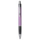 Um script branco serve como a linha superior do texto de exibição. A linha inferior do texto não é um script. Você pode substituir o texto por uma mensagem personalizada, como o nome da sua empresa e o número de telefone. A caneta é lavanda. O texto é branco.