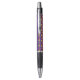 Este trabalho de arte apresenta corações coloridos do arco-íris num fundo roxo escuro.