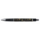 Padrão perfeito de chaves antigas, douradas e silhuetas em fundo preto.