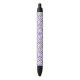 A pen with a vibrant floral pattern on its barrel displayed from the front and bottom angles. The pen features black accents and a click mechanism.
