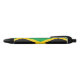 Esta design apresenta a bandeira nacional da Jamaica, que é um país insular no Mar Caribe. É a terceira maior ilha das Grandes Antilhas e do Caribe (depois de Cuba e de Hispaniola). O país tem uma influência global que menospreza a sua pequena dimensão: por exemplo, foi o berço da religião Rastafari, da música reggae (e gêneros associados como dub, ska e dancehall) e é internacionalmente destacado nos esportes, sobretudo no críquete, na primavera e no atletismo. A capital da Jamaica é Kingston. Outras grandes cidades da Jamaica incluem Portmore, Cidade Espanhola, Baía de Montego, Caneta de maio, Mandeville, Porto Velho, Savana-la-Mar, Ocho Rios e Lao invés.