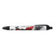 Bando de borboletas voadoras, realistas, vermelhas e pretas em fundo branco com gotas de tinta.