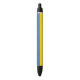 A bandeira da Ucrânia é uma faixa de duas bandas horizontais, de tamanho igual, de azul e amarelo. O topo representa o céu e o amarelo representa o trigo. Bandeira Nacional da Ucrânia