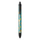 Um par de pombinhos bonitos numa caneta divertida para celebrar um aniversário. Use "Personalizar este modelo" para ajustar o texto "AVANÇAS DE ANIVERSÁRIO FELIZ!" e criar um presente exclusivo e personalizado. Dois pombinhos devotados a abraçar-se num galho, com uma fita para a sua legenda, todos desenhados no estilo da arte retrorreflectora dos pixéis. Um presente para um aniversário, Dia de os namorados ou gesto romântico para qualquer época do ano. Os pássaros do amor são pequenos papagaios afetuosos e monogâmicos, nativos da África. Este desenho é baseado na colorido espécie Lovebird de Fischer com sua plumagem verde e laranja.