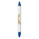 Pintura artificial, libélula floral em laranja e roxo contrastantes com papoila amarela, brilhante e florescente da Califórnia e flores silvestres azuis em fundo branco.