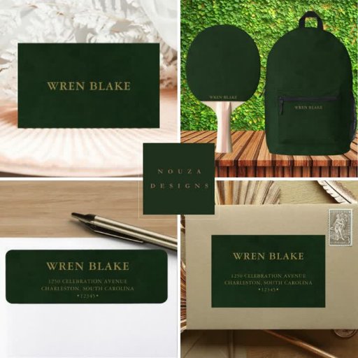 Caneta Preta Monograma de Nome em Script Elegante Verde Escuro